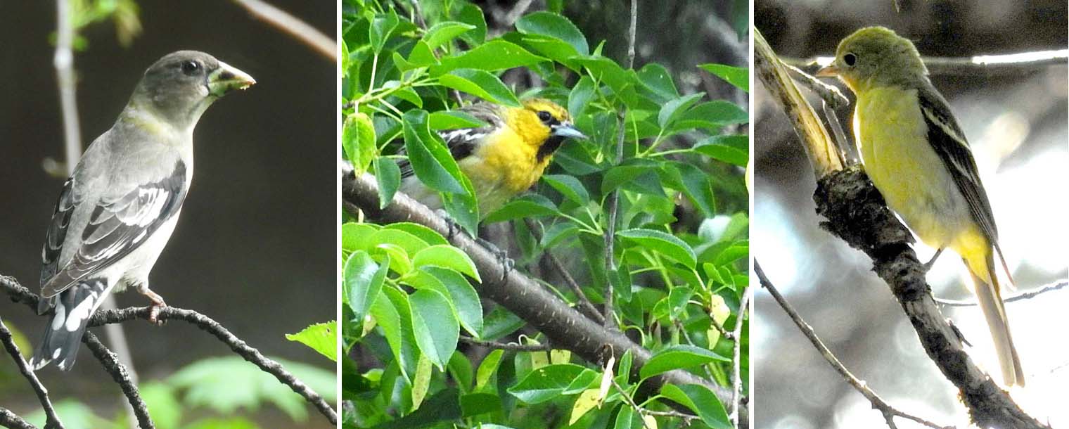 Evening Grosbeak (female) Bullock's Oriole (male) Western Tanager (female)