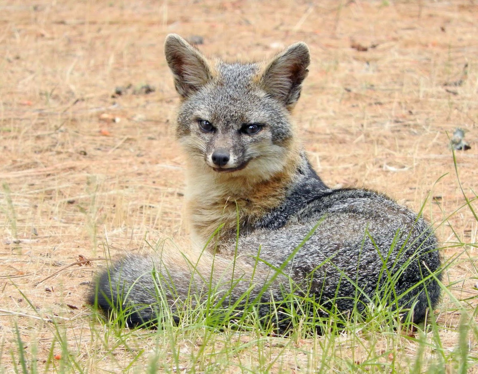 Late one evening this week I saw a Gray Fox crossing our road! I ran up to get a photo, and found that the fox had settled down in my neighbor's field! Wow! I think it was one of the ones that I used to see on our property. I watched it for several minutes before it rambled off. What fun! Right now, this fox may be caring for some young. Gray Foxes mate for life, and right around now is the time for them to have their offspring. Both parents feed and care for the young. The kits are weaned in 2-6 weeks, but remain dependent on parents until they are 10 months old. Foxes are primarily nocturnal, but can be seen at any time of the day. At night their highly developed senses of hearing, touch, and smell make them efficient predators. They also have more rods than cones in their eyes, which makes them able to see in very dim light.